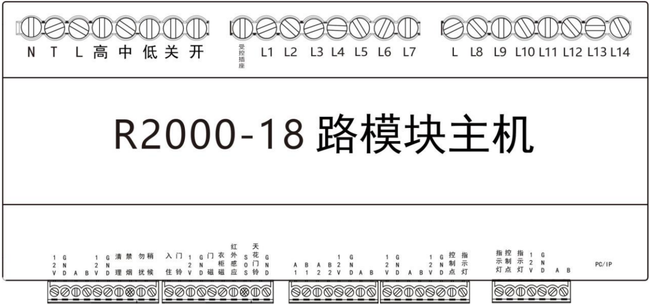 R2000-18路模块化主机应用于客房内灯明、暖通设备、窗帘电机等设备的控制。