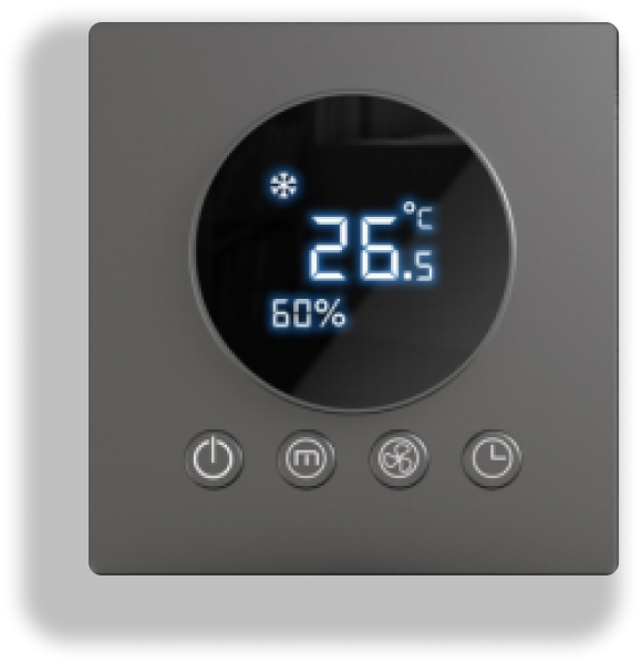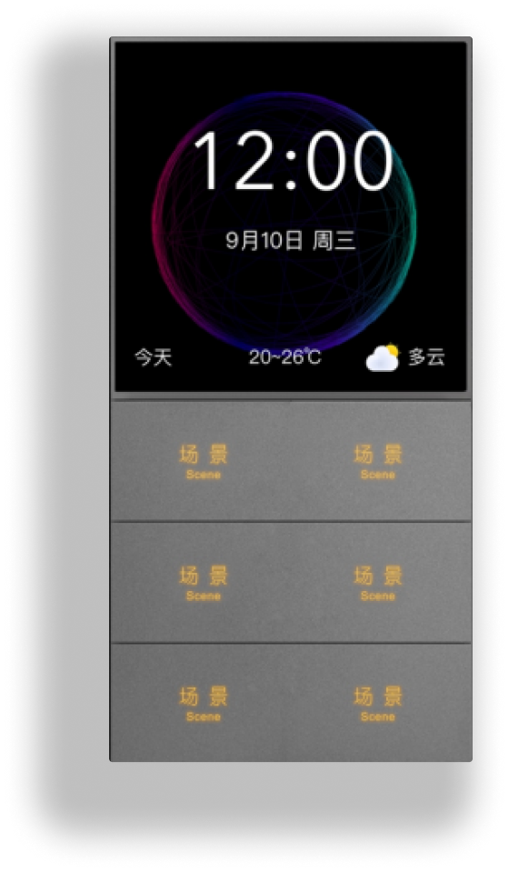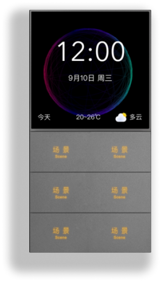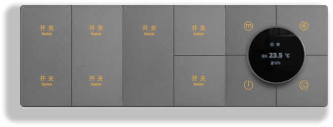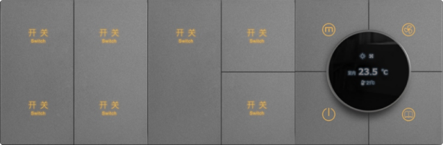 无级旋钮温度调节,LCD数显屏幕,呼吸式炫彩光圈;Zigbee通讯、485通讯模式;可配合VRV空调网关组建VRV空调智能控制系统。