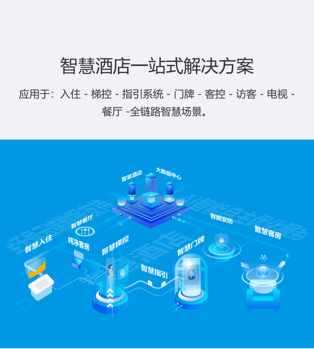 智慧入住-智慧梯控-智慧指引系统-智慧门牌-智慧客控-智慧访客-智慧电视-智慧餐厅-全链路智慧场景