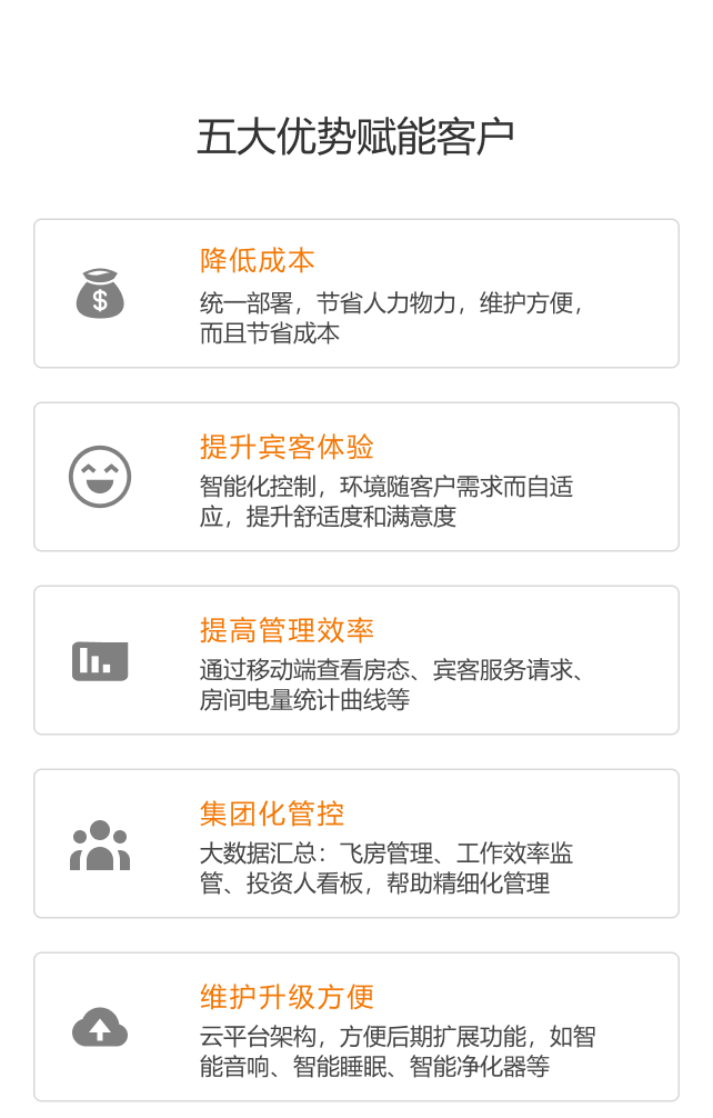 采用云平台架构,方便酒店后期增加各种智能功能,